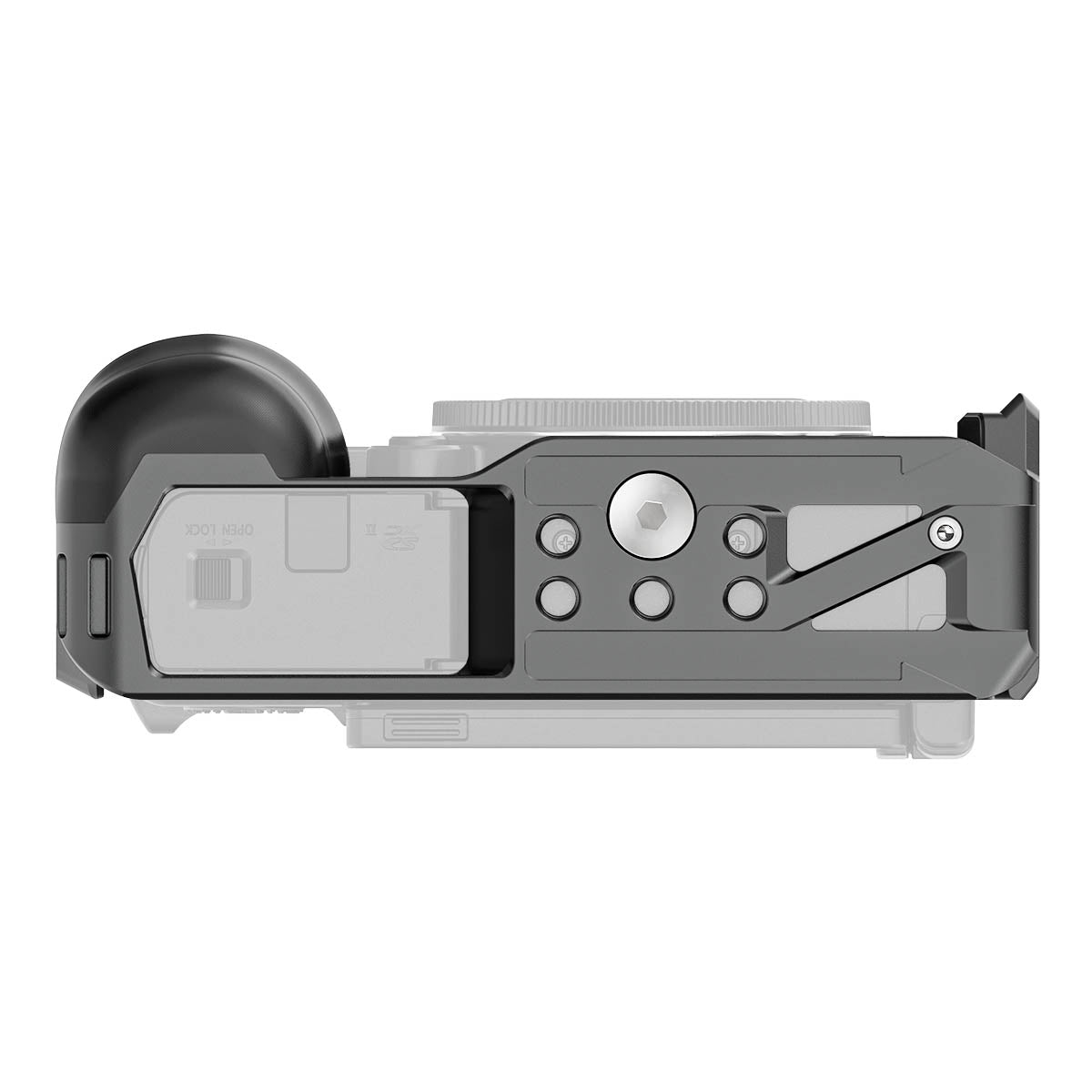 • Two points of cage-to-camera attachment (2x bottom screws)